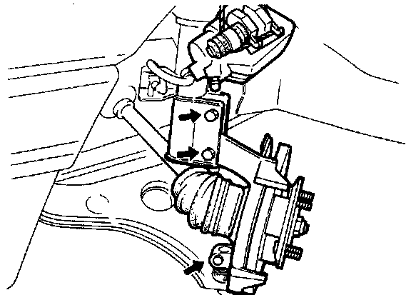 6. Remove the caliper assembly from the knuckle and hang it from the strut.