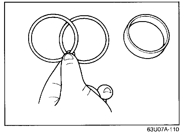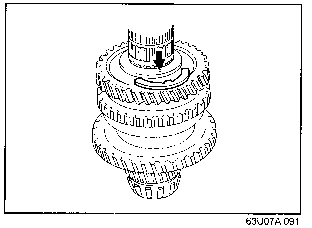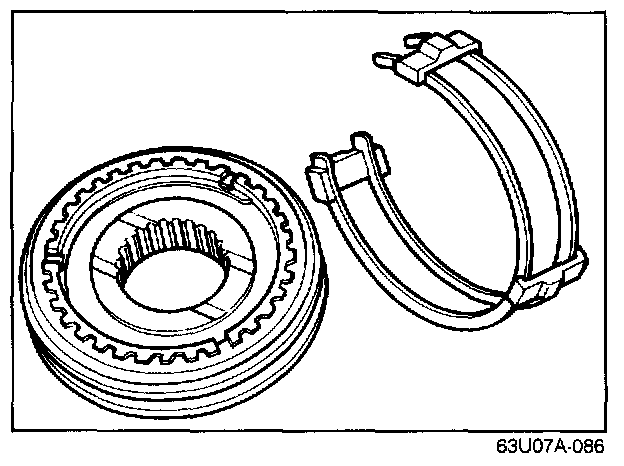 Install the synchronizer key-spring in the clutch hub by placing the hook in its groove. This holds the three synchronizer keys in place.