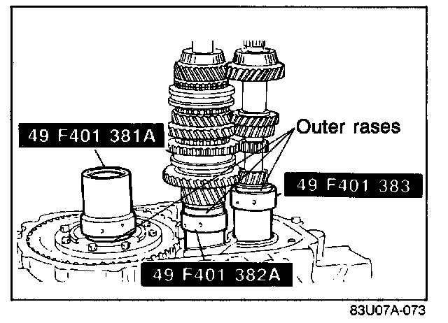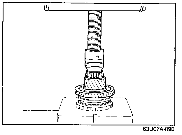 Press the inner race on the end of the primary shaft (4th gear end) with SST.