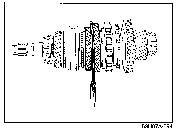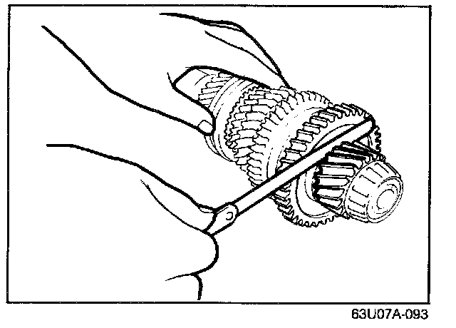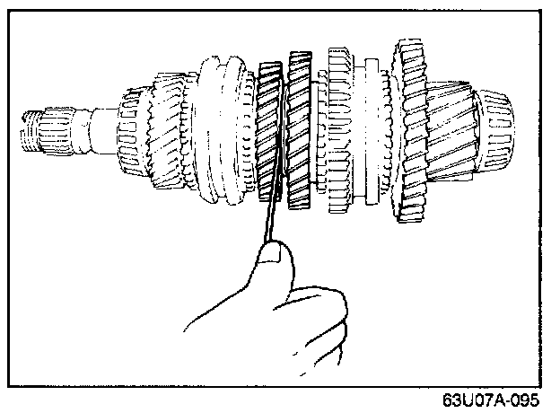 Measure the clearance between the 1st gear and the differential drive gear on the secondary shaft.