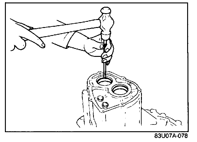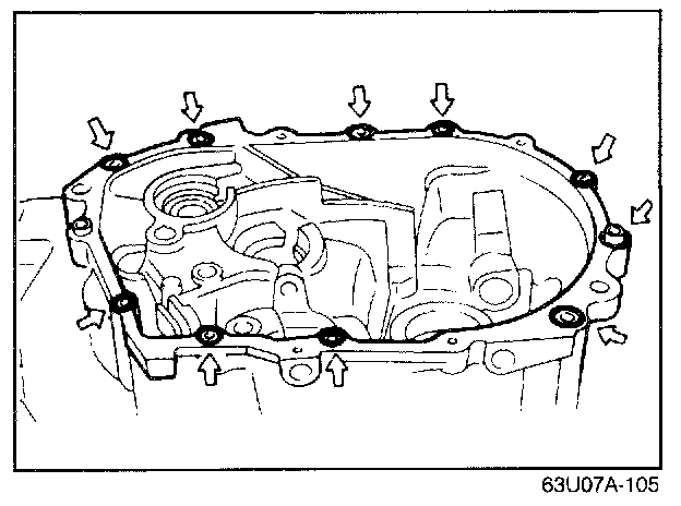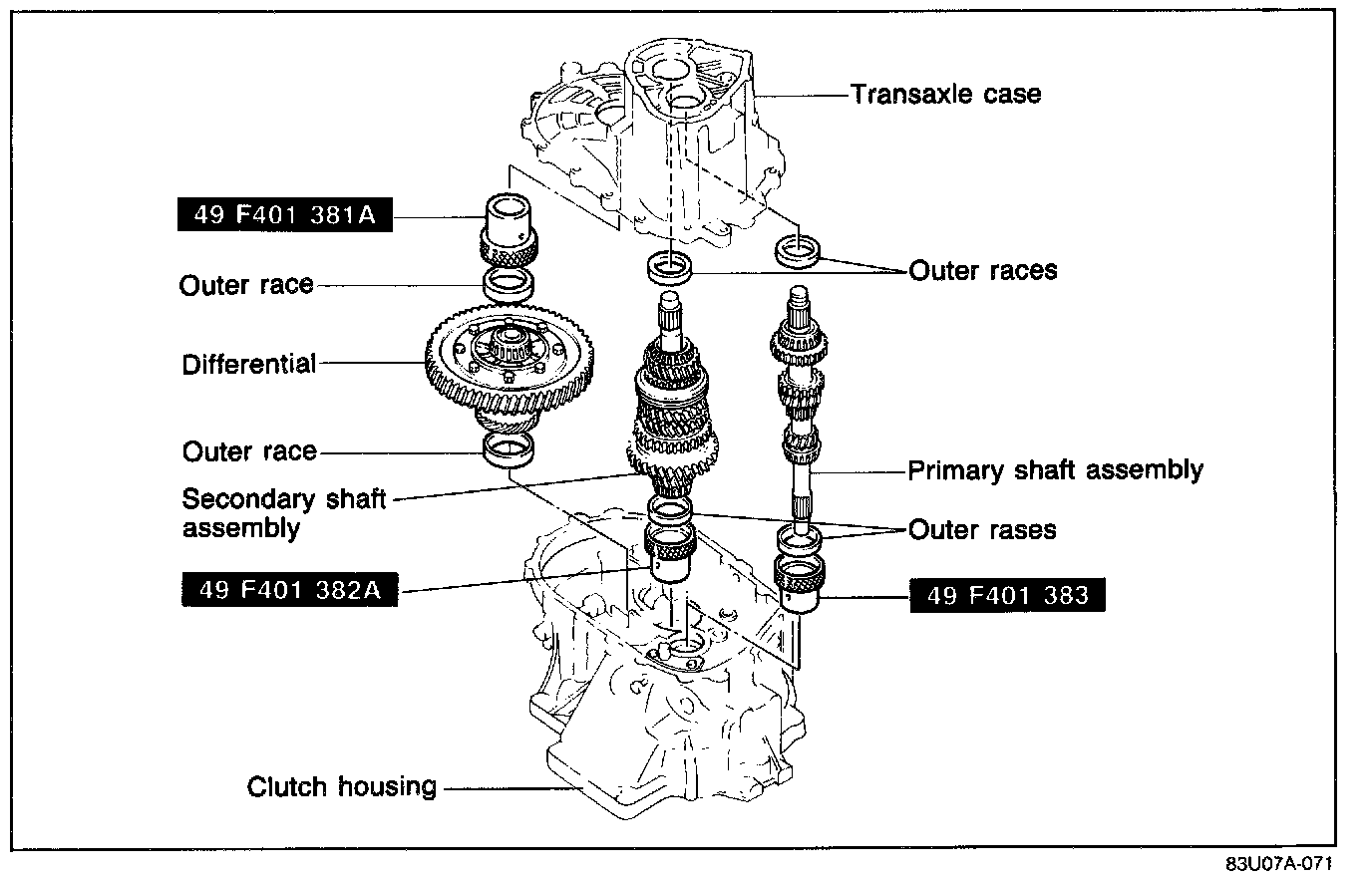 16. Remove the bearing outer races for both shafts from the transaxle case. Leave the differential side bearing outer race in the clutch housing.