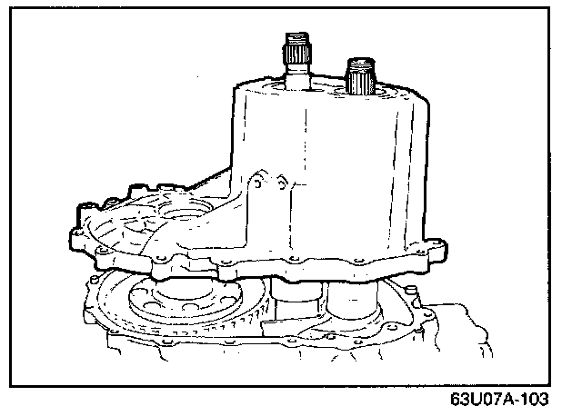5. Mount the transaxle case to the shafts and the differential selector, as shown in the image.