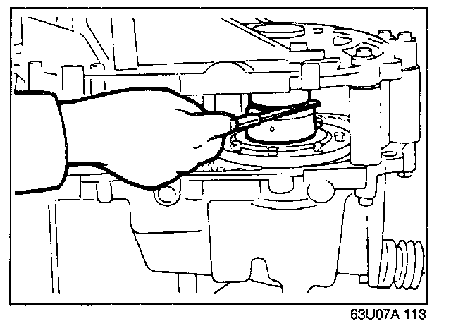 13. Use a thickness gauge to measure the gap in the selector for the differential.