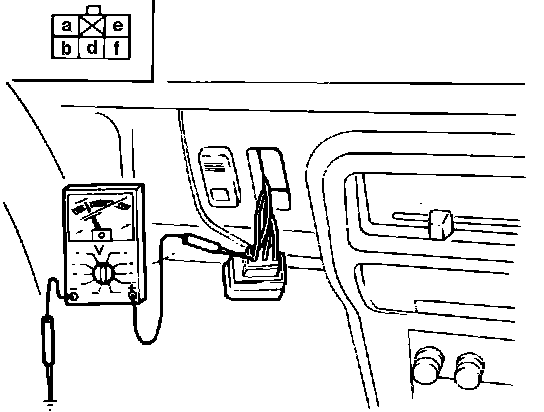 3. Check voltage between each connector terminal and ground, Fig. 1. In power mode there should be less then 1.5 volts at terminals b, d, e and f and approximately 12 volts at terminal a. In economy mode, there should be less then 1.5 volts at terminals a, b, d and f and approximately 12 volts at terminal f.