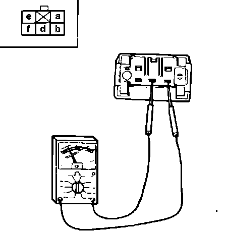 2. Check continuity between connector terminals, Fig. 2. In economy mode, there should be continuity between terminals a and f and between terminals d and e. In power mode, there should be continuity between terminals a and f and between terminals d and b.