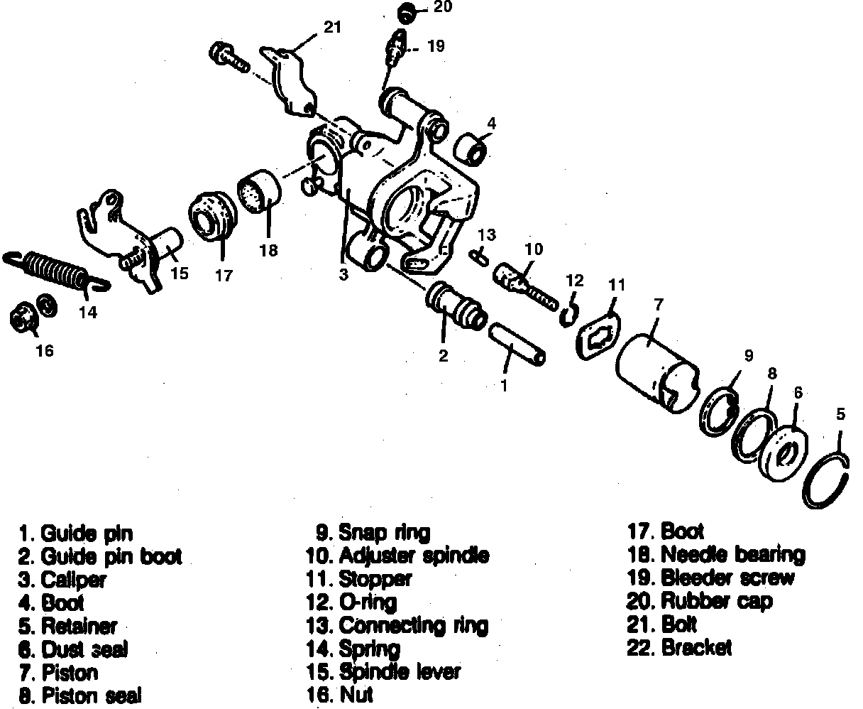 Fig. 11 Exploded View Of Rear Disc Brake Caliper. 89 323: