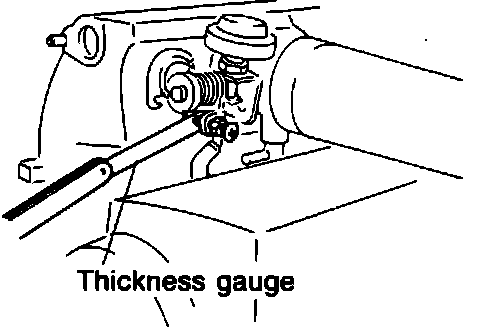 6. Insert a 0.5 mm (0.020 in) thickness gauge between the throttle stop screw and the stop lever.
