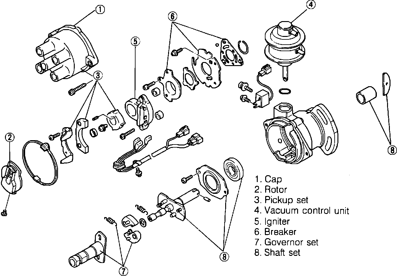 3. Check for continuity between inside electrodes and the respective ignition wire terminals on the cap exterior. If continuity is not found across all electrodes and terminals, replace cap.