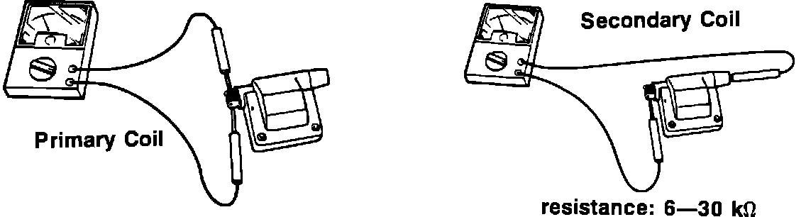 Check insulation resistance between primary terminal and coil case. It should be 10M ohms or more. Replace coil if it does not test as specified.