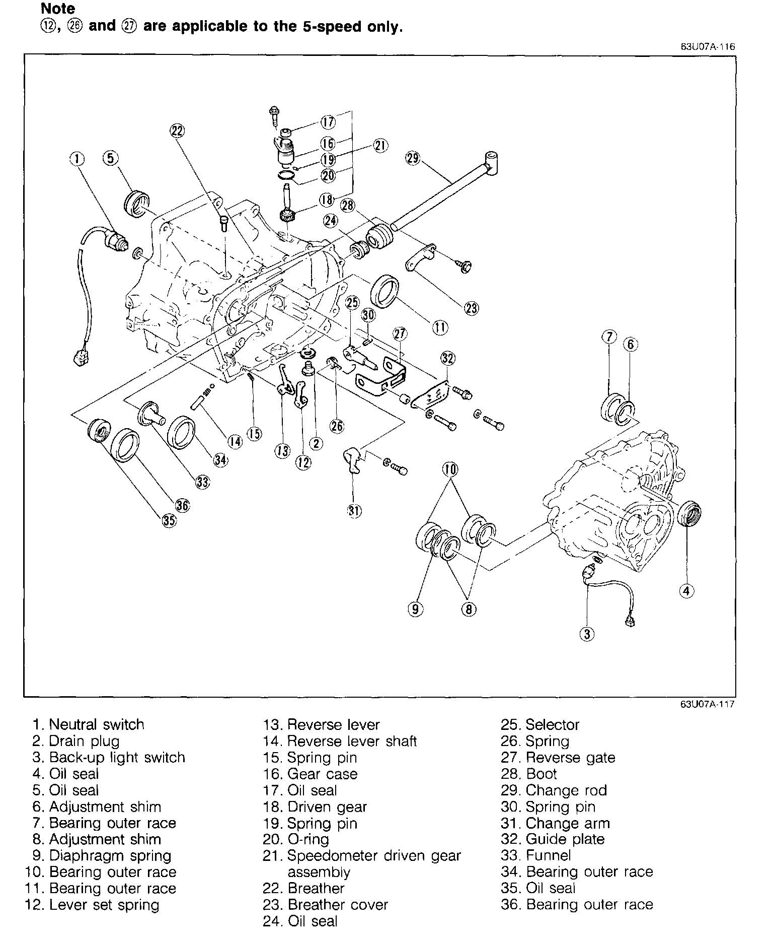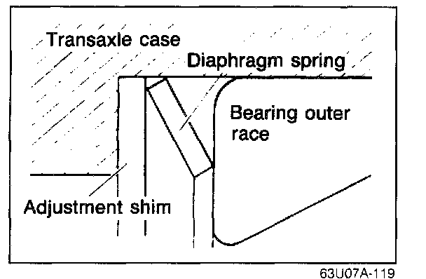 1. Install the selected adjustment shims and the diaphragm spring into the transaxle case.