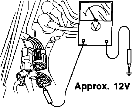 2. With ignition switch "ON," check for approximately 12V at connector positive terminal.