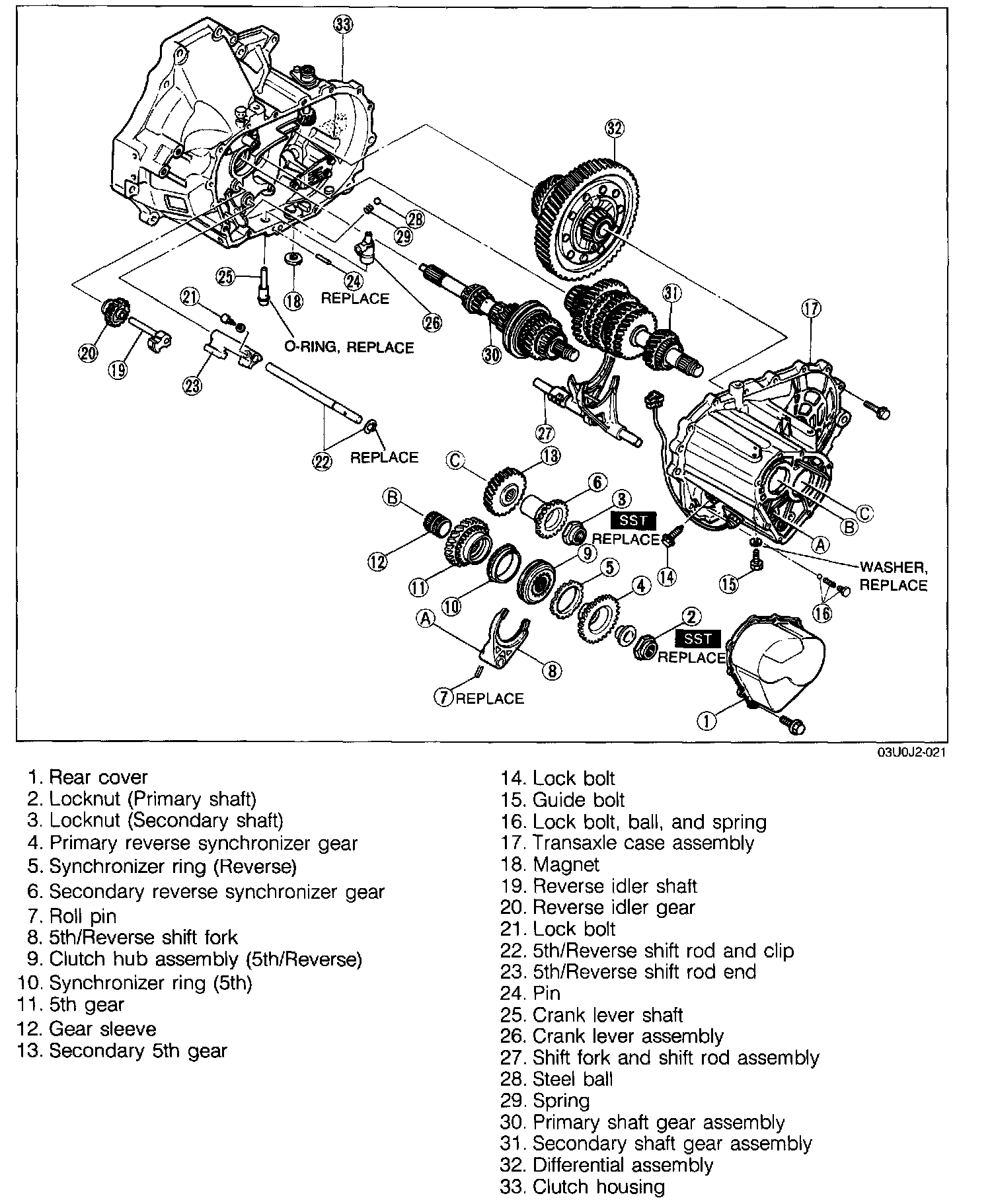 1. Measure the clearance between the 2nd gear and secondary 3rd gear.