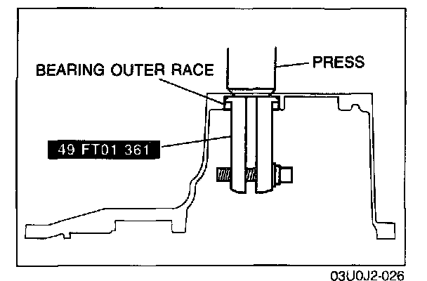 NOTE: If it is difficult to remove the bearing outer race, remove it with the SST.