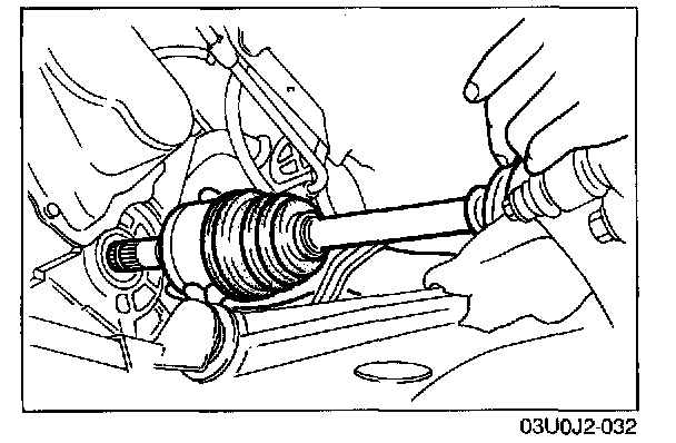 CAUTION: Do not subject the tripod joint to shock when removing the driveshaft.