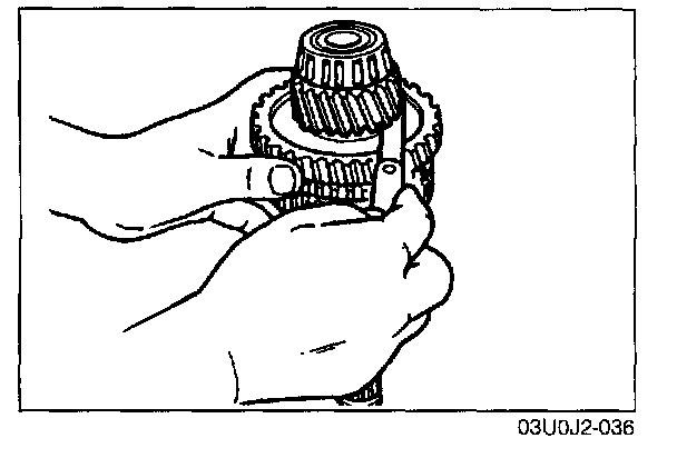 2. Remove the clutch hub assembly (1st/2nd), synchronizer ring (1st), and 1st gear with a press.