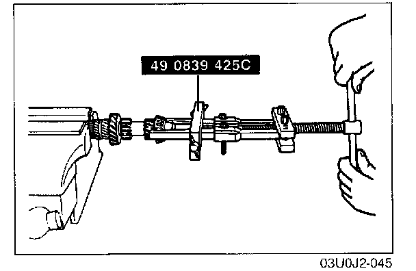 1. Remove the bearing inner race and secondary 4th gear with the SST.