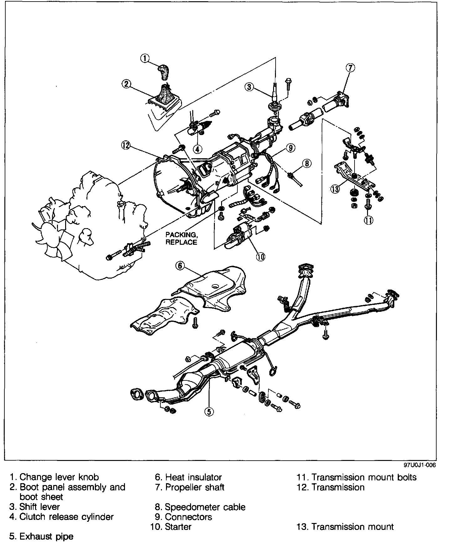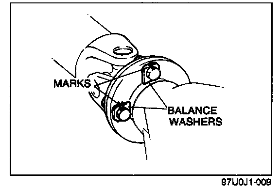 1. Before removing the propeller shaft, mark the flanges for correct reassembly.