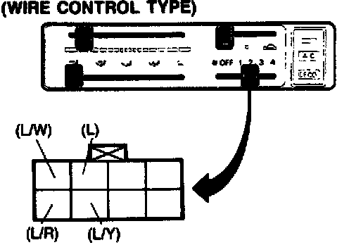 3. Measure the voltage at terminal-wire (B) of the blower switch connector.