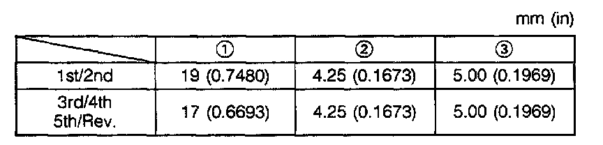 Clearance: 0.165 - 0.365 mm (0.0065 - 0.0144 in.)