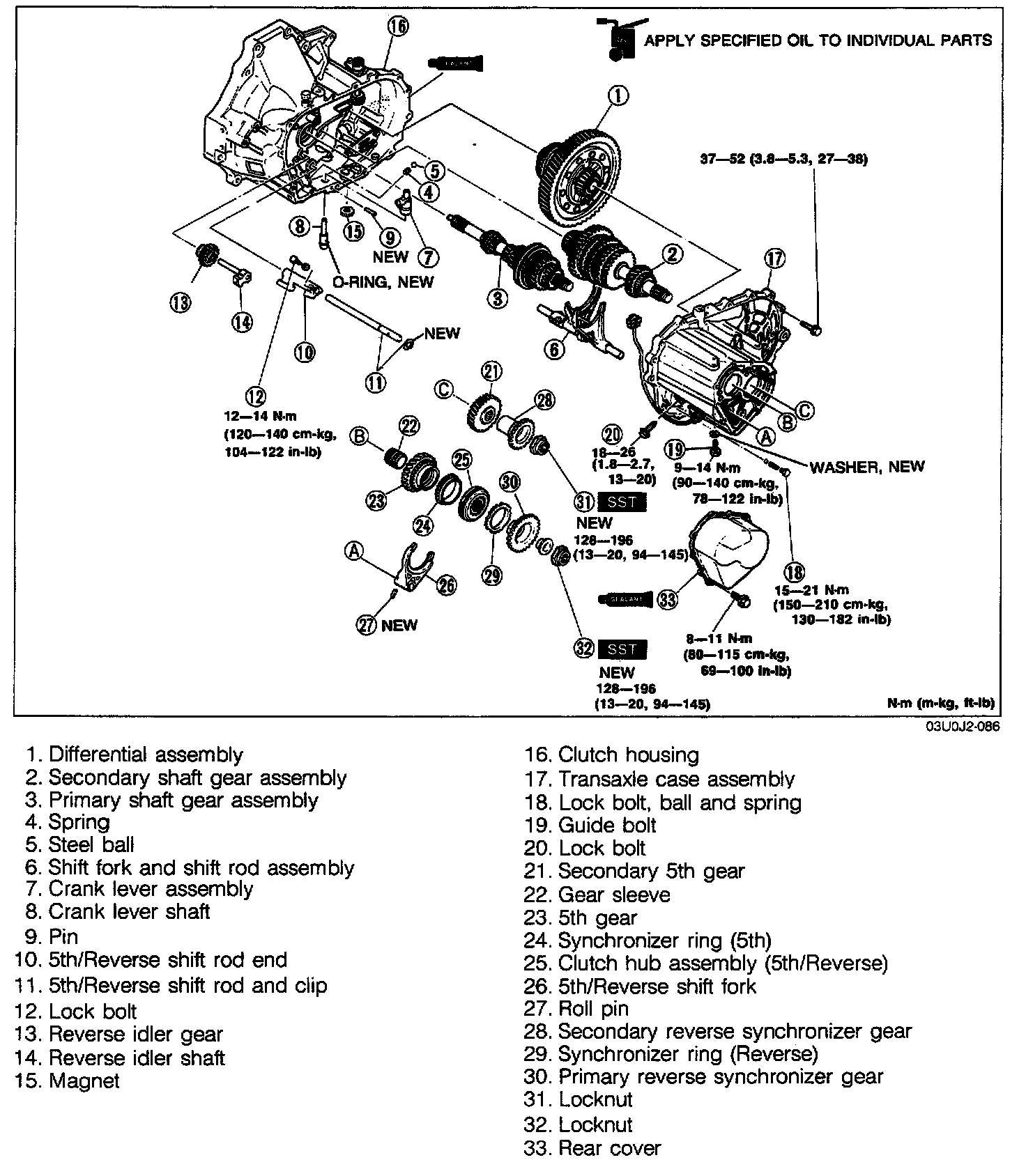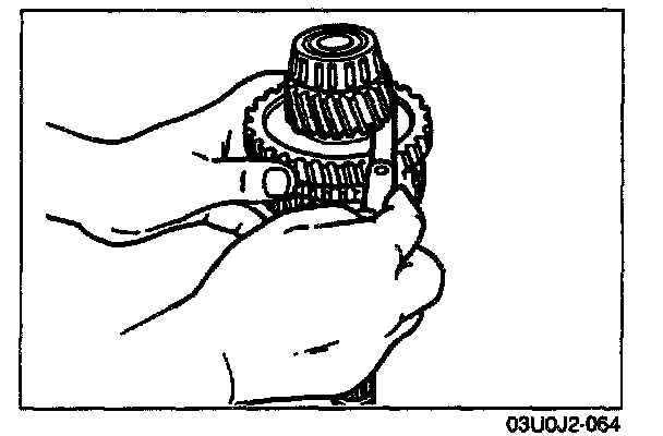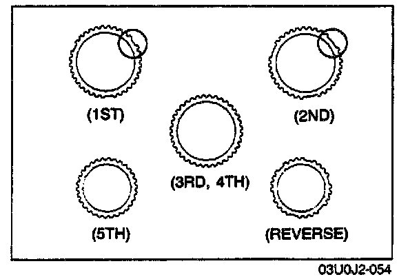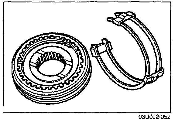 - The size of the 1st, 2nd, 3rd, and 4th synchronizer rings are the same. Be careful when Installing them. The 2nd ring has the larger cut-out as shown In the illustration.