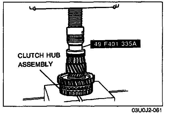 2. Press the clutch hub assembly (1st/2nd) on with the SST.