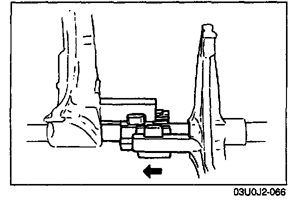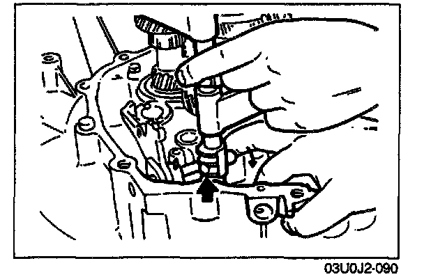 4. Set each clutch hub sleeve to the neutral position, and tap the shift rod from above so that the steel ball goes into the center groove (of the 3 grooves in the control end).