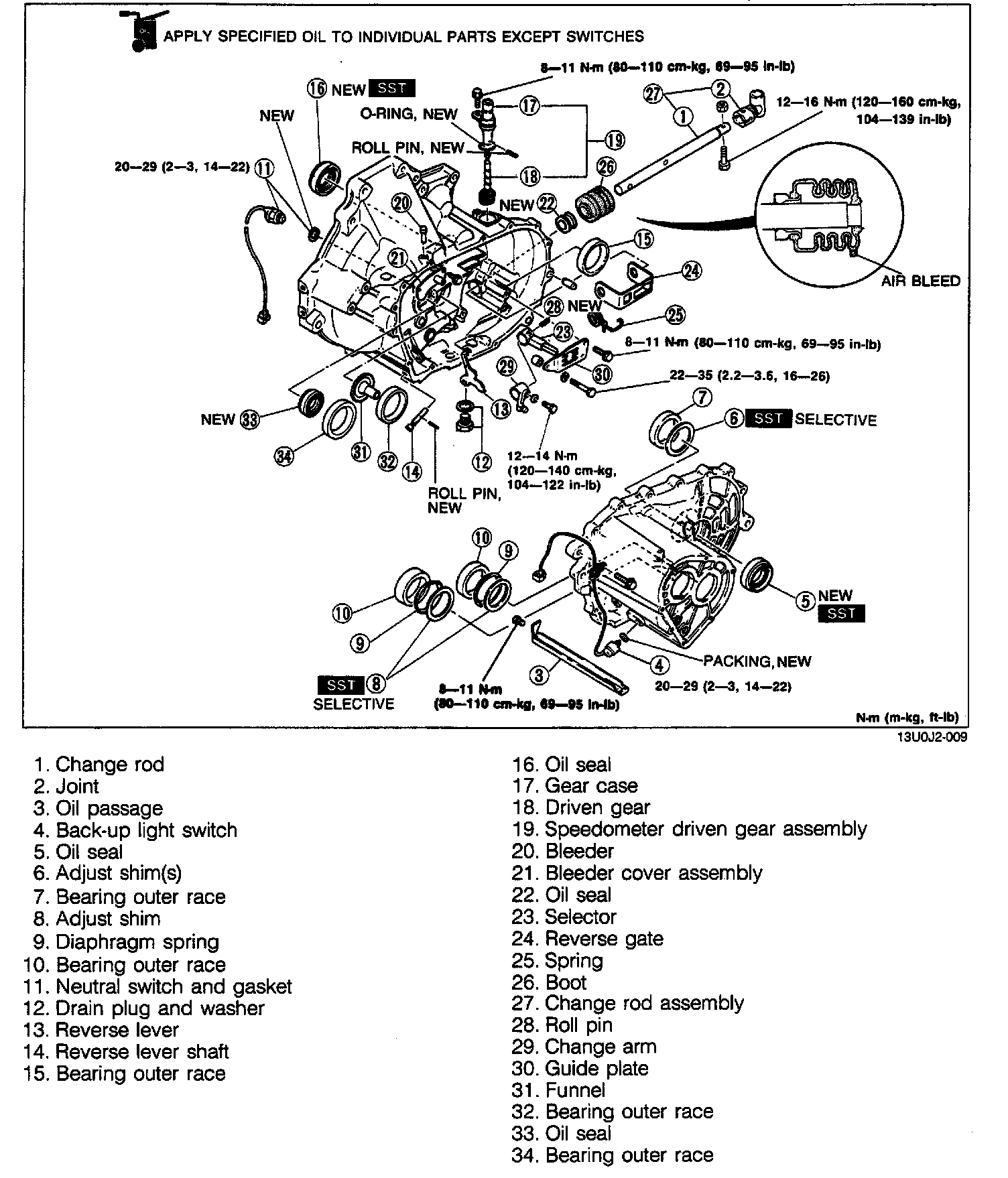 Tightening torque: 37 - 52 N-m (3.8 - 5.3 m-kg, 27 - 38 in-lb)