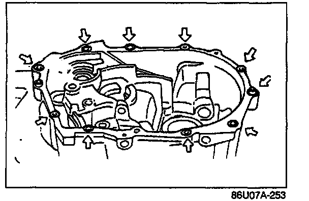 4. Assemble the parts within 10 minutes after applying sealant. Allow all sealant to cure at least 30 minutes after assembly before filling the transaxle with transaxle oil.