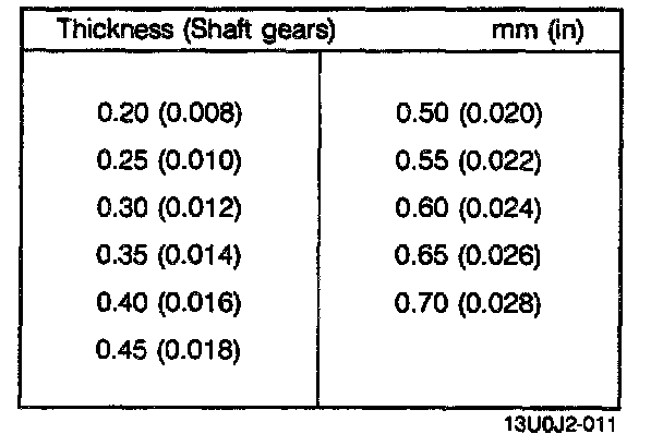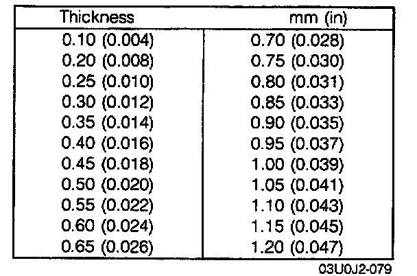 14. Add 0.15 mm (0.0059 in.) to the measured clearance and select the combination of shims closest in value to that measurement.