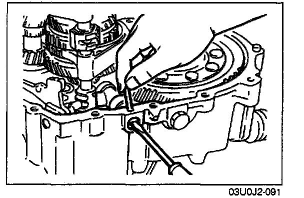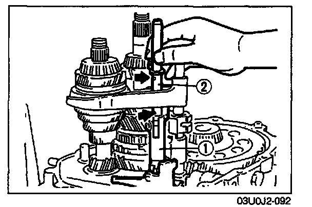 2. Measure the clearance between the 1st gear and differential drive gear.