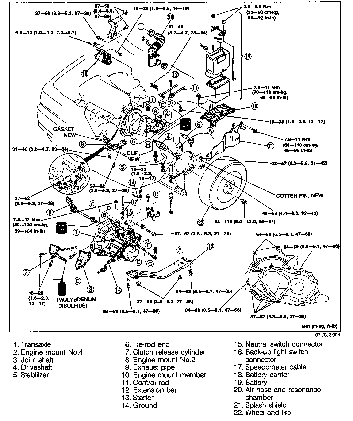 3. Fill the transaxle with the specified amount of the specified transaxle oil after installation.