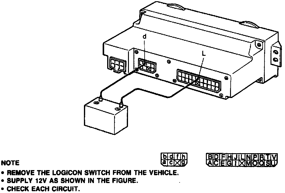 2. Apply 12V to terminal a, and check that the indicators are dim.
