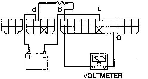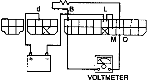 1. Connect a jumper wire between M terminal and L terminal. Connect a resistance (at least 1 kOhm) between B terminal and O terminal, and check the voltage between these terminals using a voltmeter.
