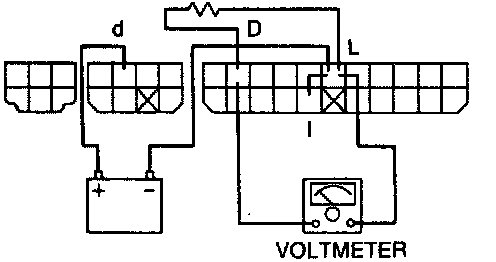 1. Connect a jumper wire between I terminal and L terminal. Connect a resistance (at least 1 kOhm) between D terminal and L terminal, and check the voltage between these terminals using a voltmeter.