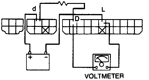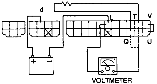 3. Connect a resistance (at least 1 kOhm) between d terminal and D terminal, and check the voltage between D terminal and L terminal using a voltmeter.