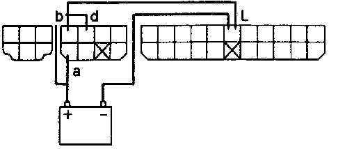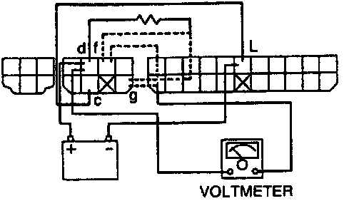 3. Apply 12V to terminal a, and check that the indicators are dim.