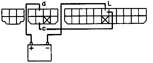 Connect a jumper wire between terminal c and terminal L. Connect a resistance (at least 1 kOhm) between each terminals, and check the voltage between these terminals.