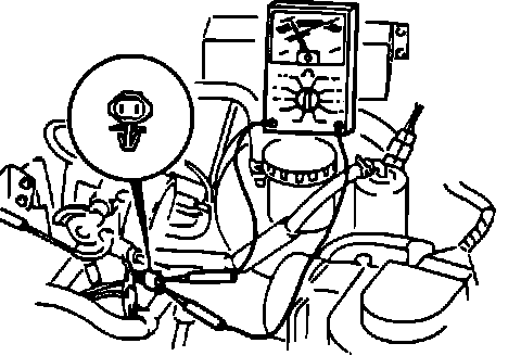 NOTE: Ensure that test connector is not grounded and idle speed is set to 750 ± 50 rpm (manual trans. in neutral, automatic trans. in "P").