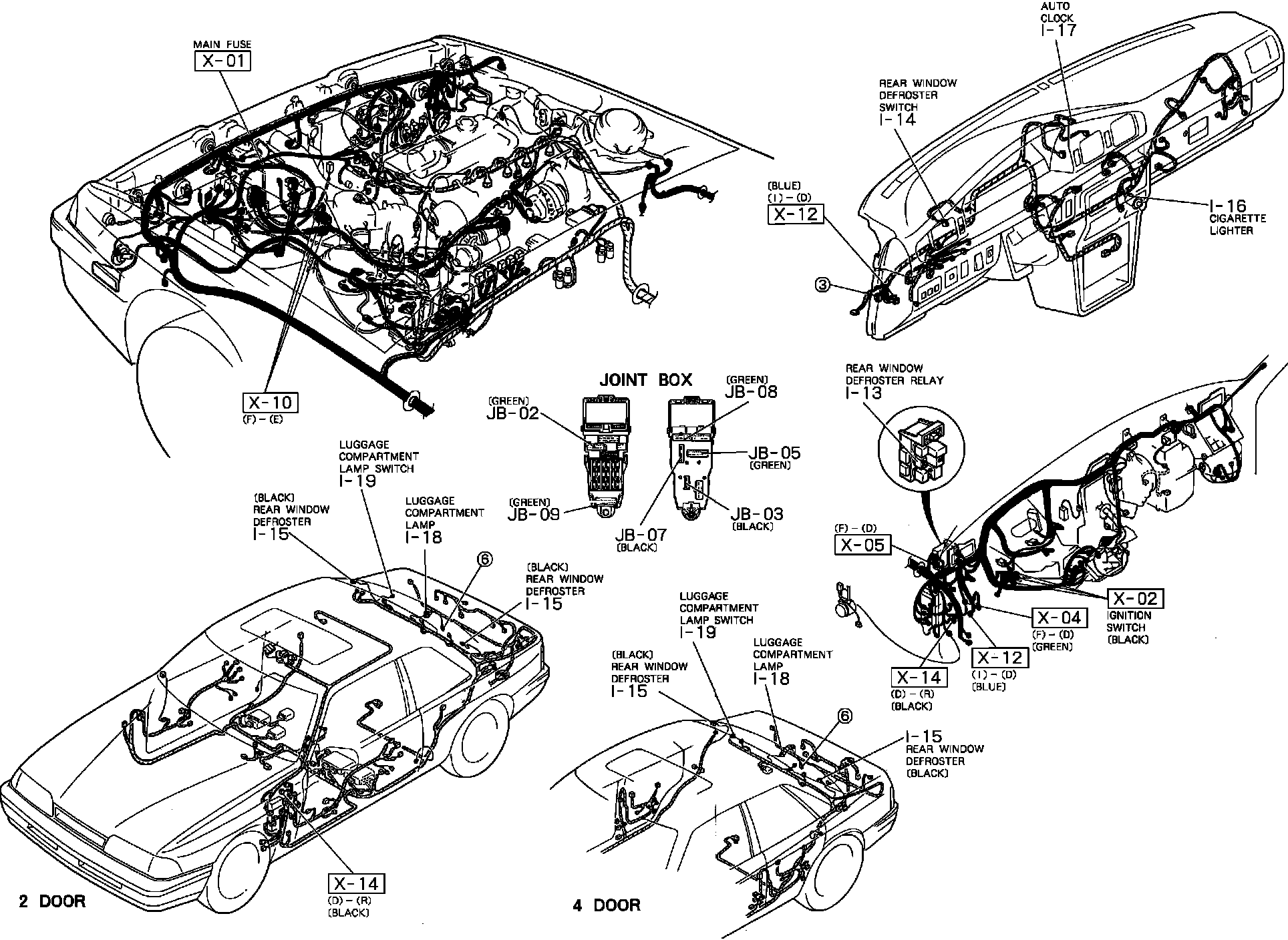 Rear Window Defogger, Clock, Cigar Lighter And Luggage Compartment Lamp. Harness And Connector Locations: