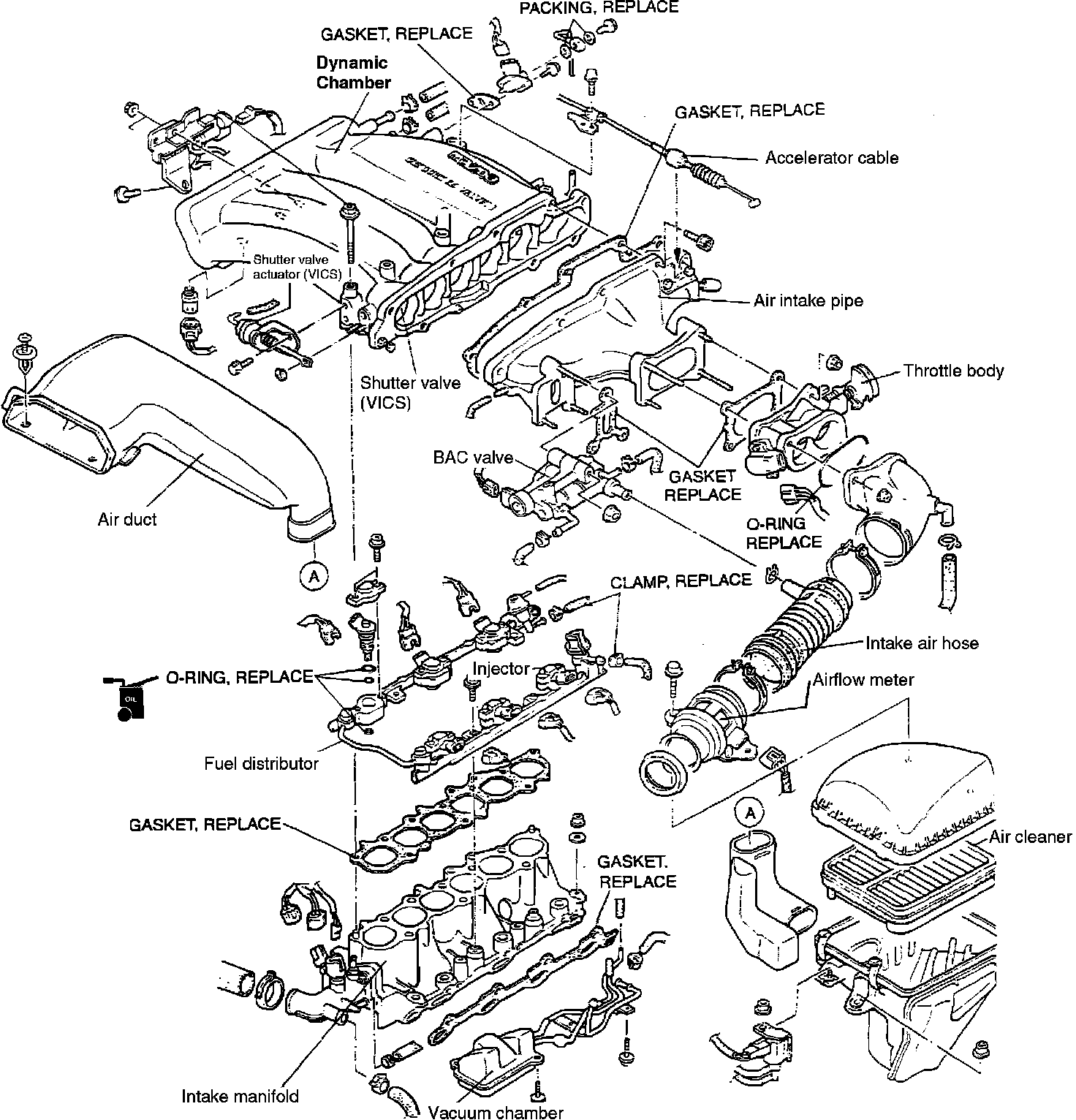 6. Remove chamber with intake air pipe and throttle body, as an assembly.