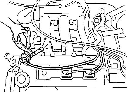 4. With insulated pliers, hold threaded portion of spark plug against a good engine ground while cranking engine.