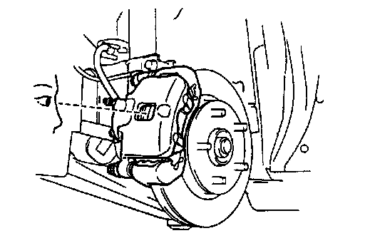 Note: When the remaining thickness becomes 2 mm (0.08 in), the wear indicator will make a squealing noise while the vehicle is in motion to indicate that the pad should be replaced.