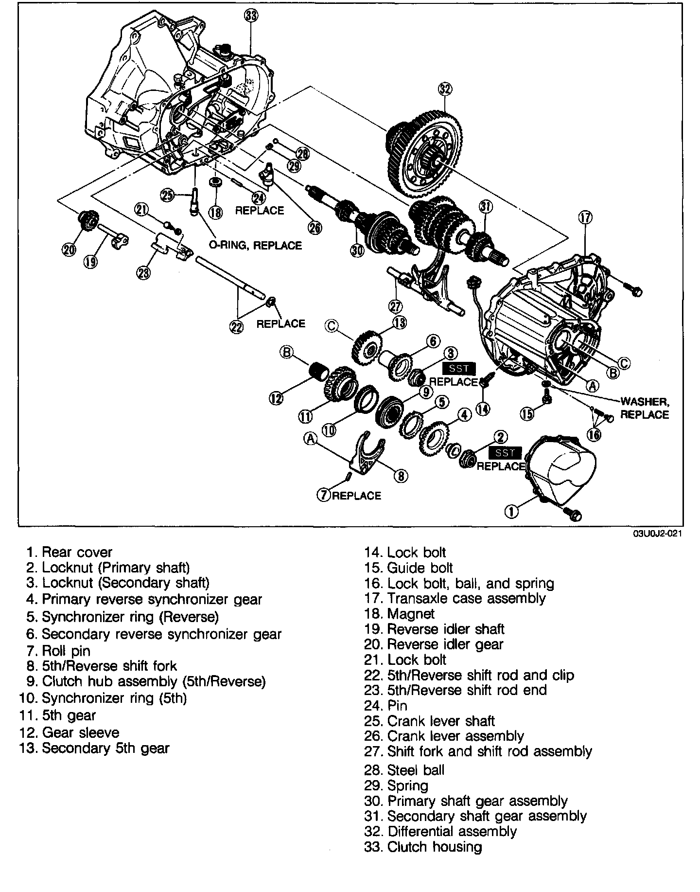 1. Remove the bearing inner race and secondary 4th gear with the SST.