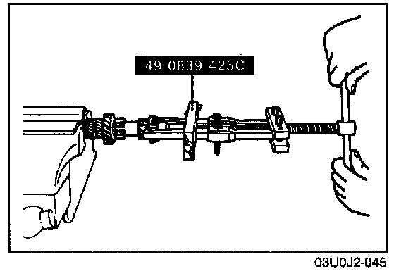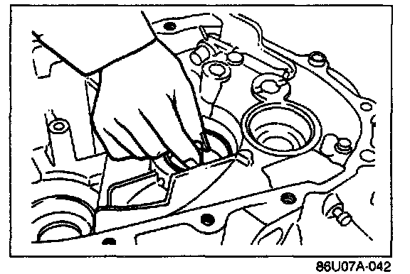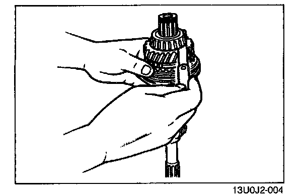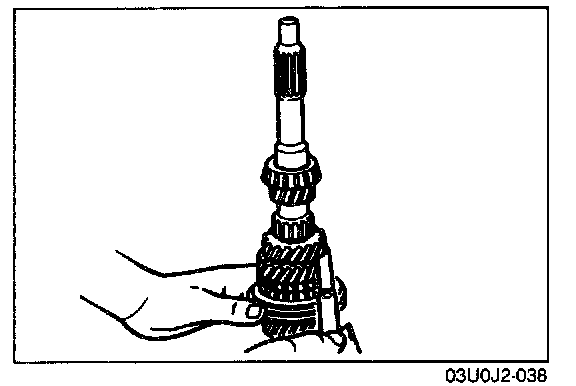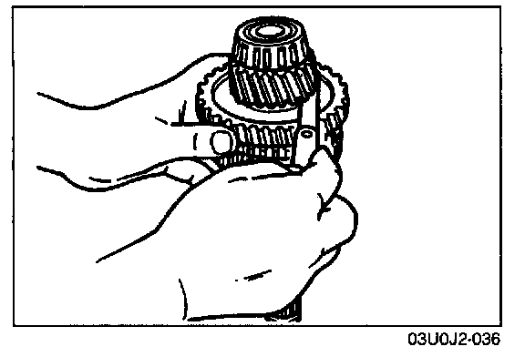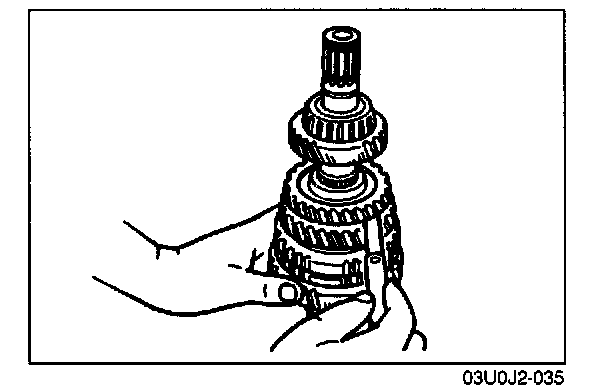 2. if the clearance exceeds the maximum, check the contact surfaces of 5th gear and the clutch hub. Replace worn or damaged parts.
