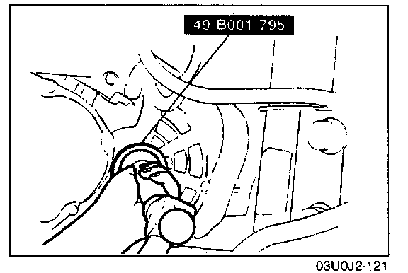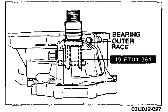 NOTE: Since removing the bearing outer race is difficult, use the SST.