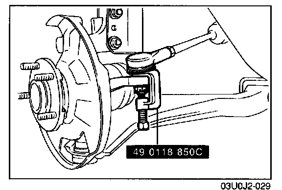 4. Remove the clinch bolt and pull the lower arm downward. Separate the knuckle from the lower arm ball joint.
