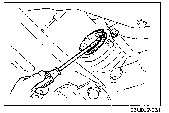 Jack up the vehicle and support it with safety stands. Drain the transaxle oil. Next, use the following procedure to replace the driveshaft oil seal: