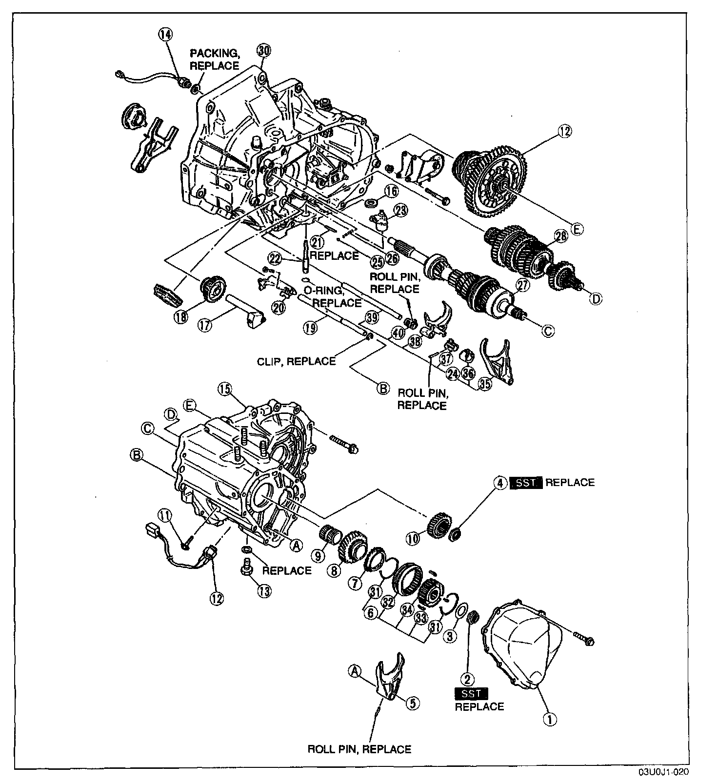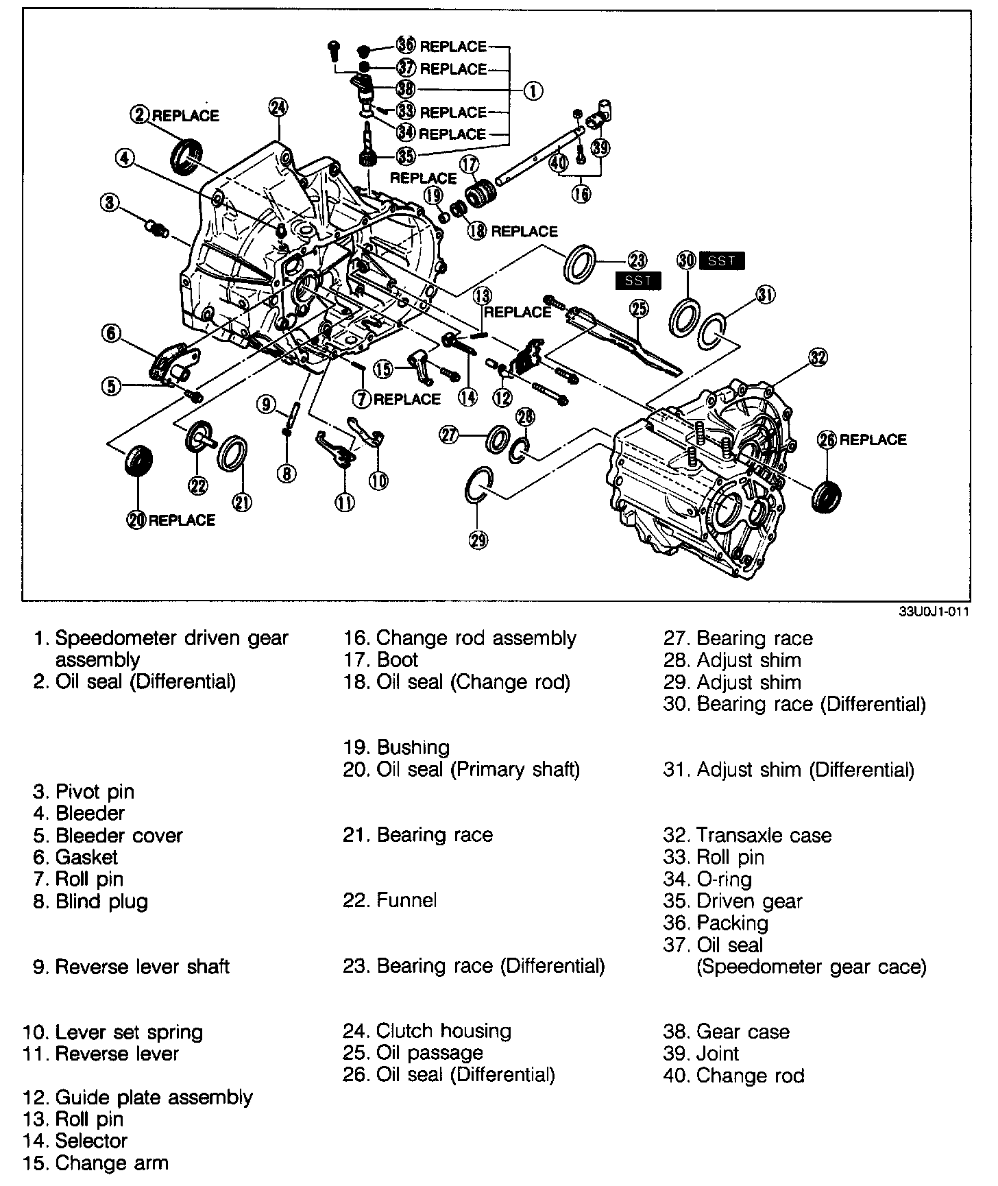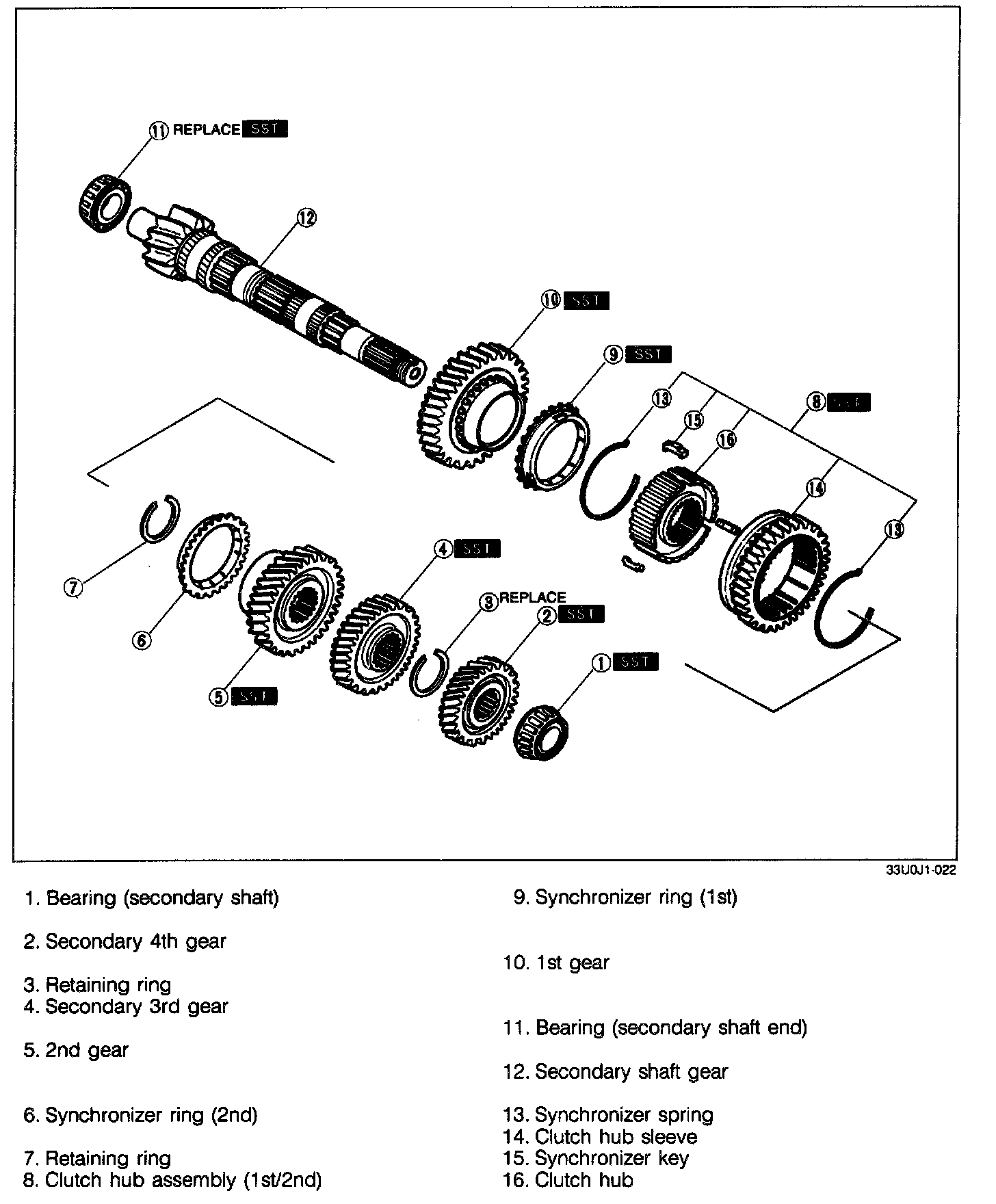 2. Remove the secondary 3rd gear and 2nd gear by using the SST.
