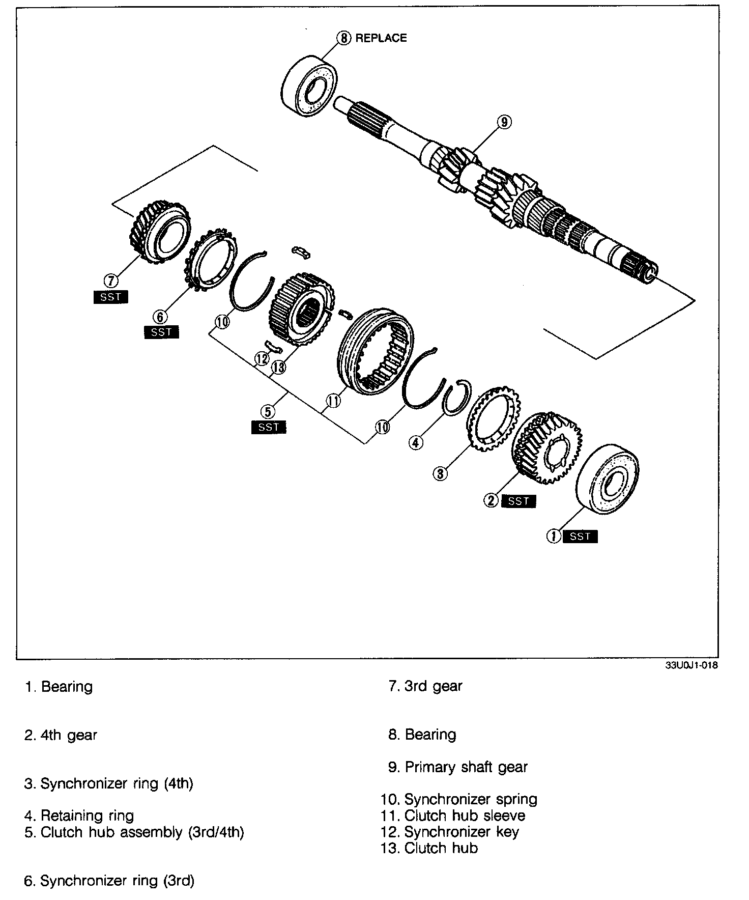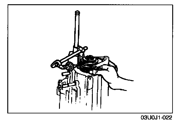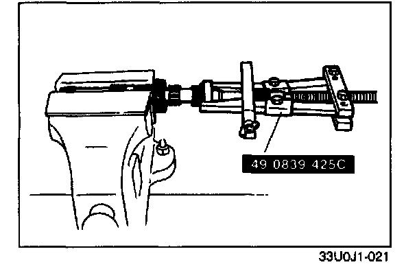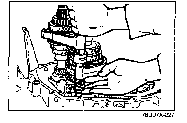 Remove the bearing and secondary 4th gear by using the SST.