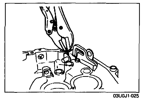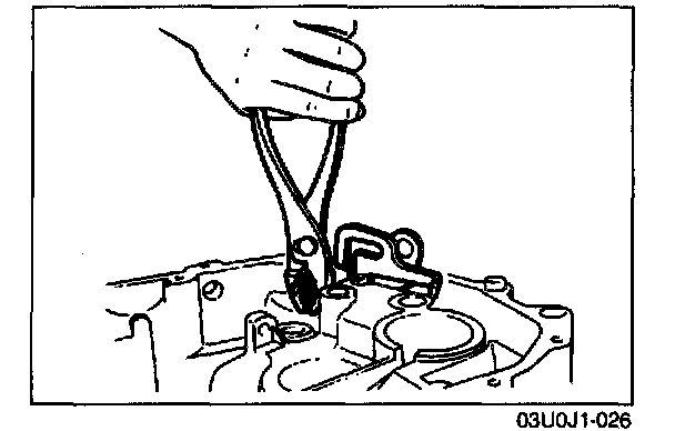 3. Lift the control end and remove the steel ball, and, at the same time, remove the shift rod from the clutch housing.